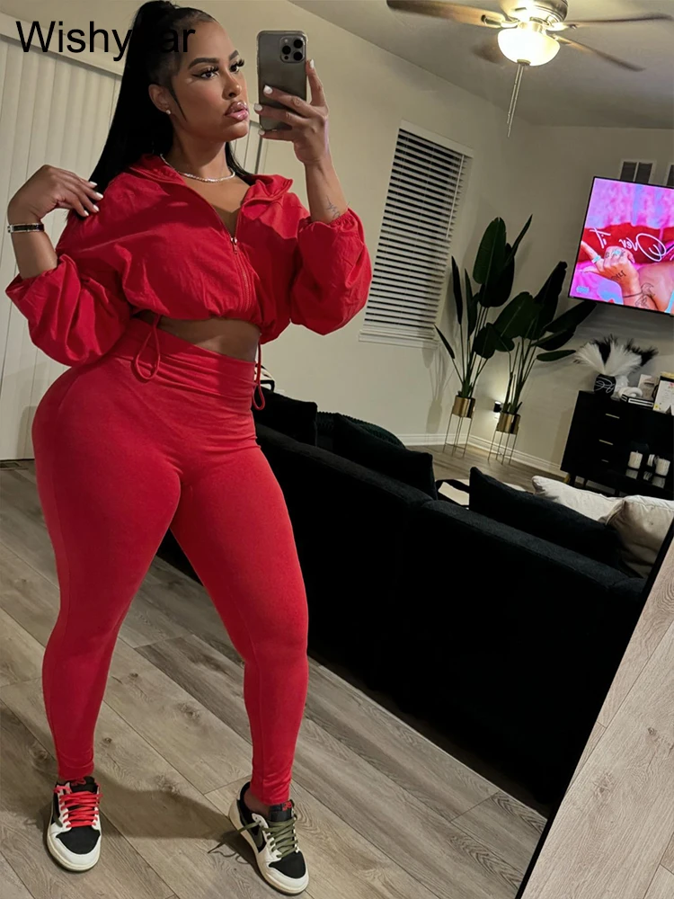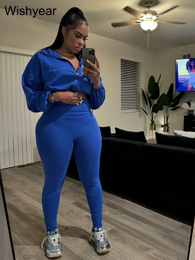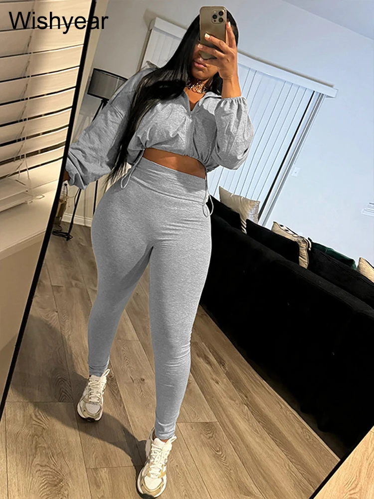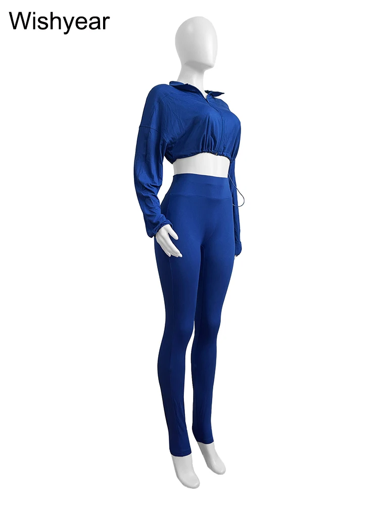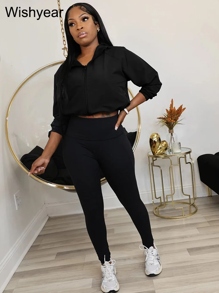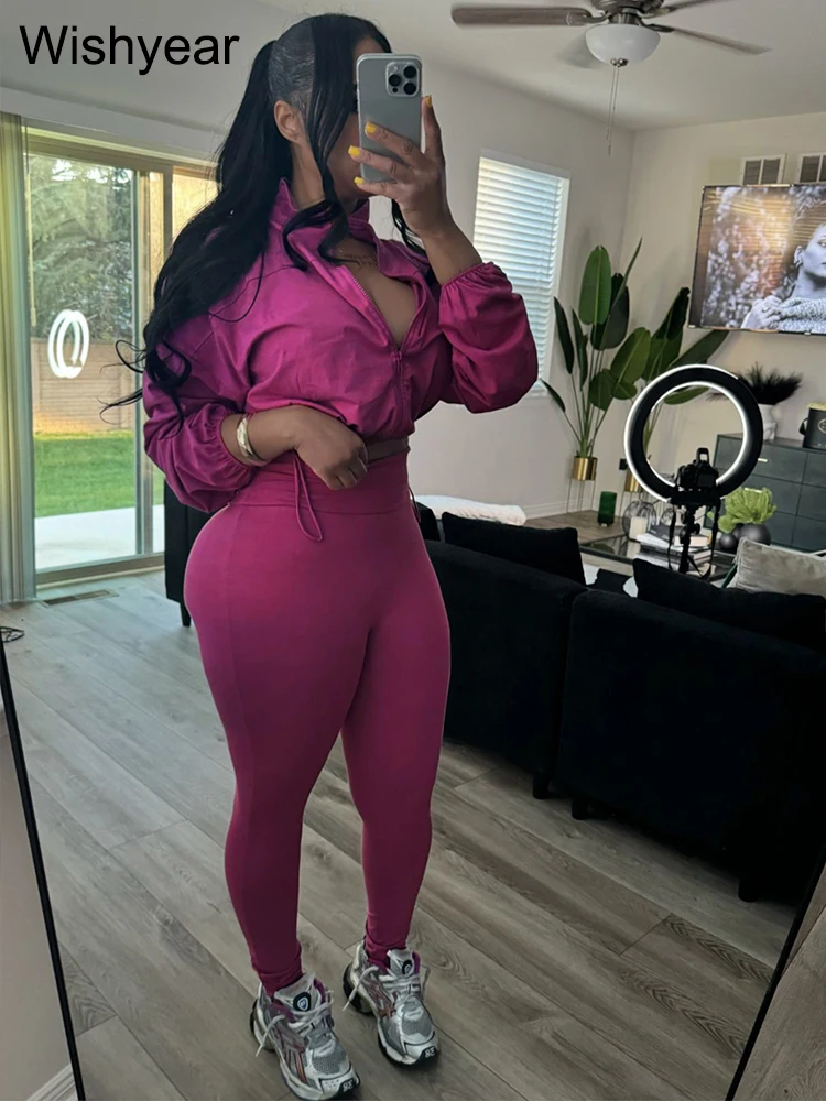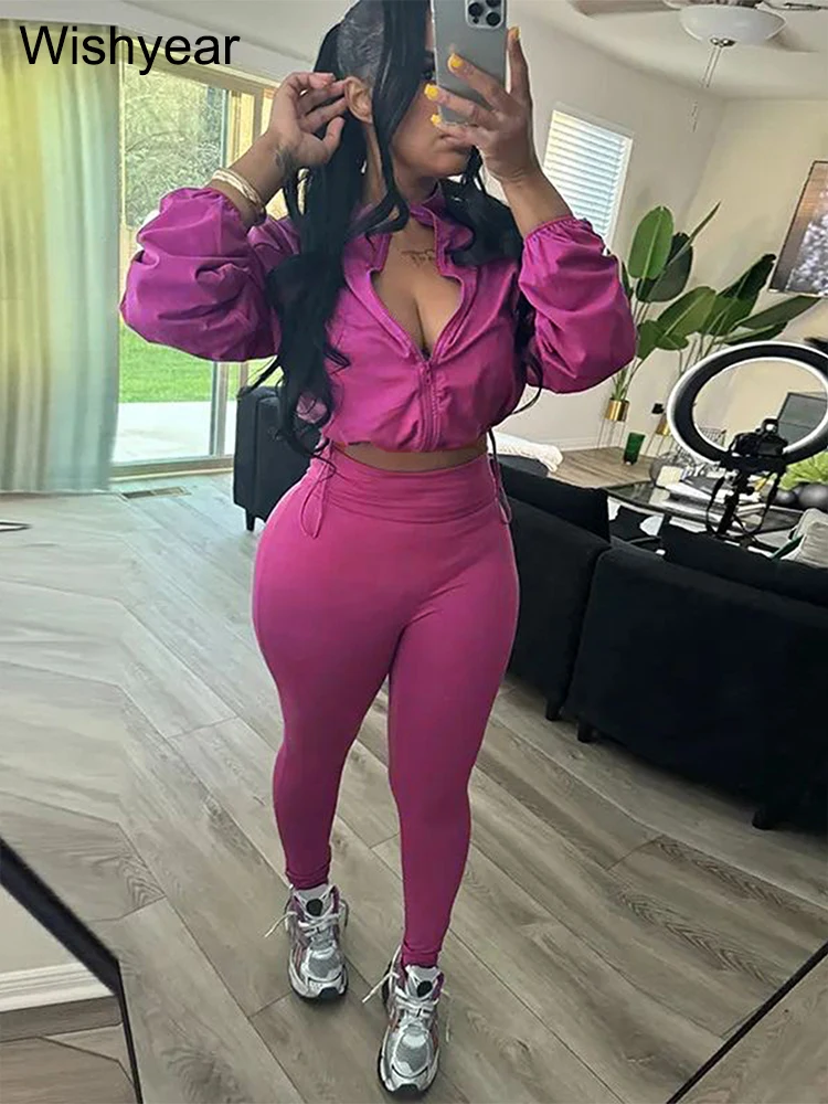 Fashion Khaki Jogging Pants Sets Women‘s Clothing Long Sleeve Crop Jacket and Leggings Two 2 Piece New Tracksuit Matching Suit