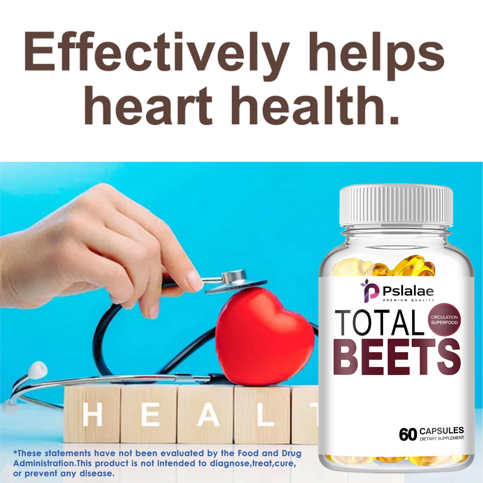 Total Beets Supplement - Enhances Energy, Endurance, Heart Health, Blood Pressure Support, Improves Circulation - 60 Capsules