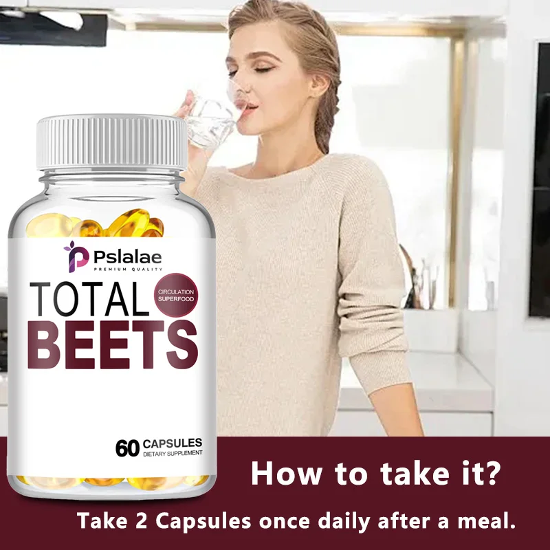 Total Beet Capsules - Enhances Energy, Endurance, Heart Health, Blood Pressure Support, Improves Circulation - 60 Capsules
